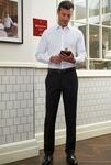 100% Superfine Polyester (43% Recycled)  Flat front trouser, tailored fit, key loop, 2 side pockets, 1 rear pocket. Half hem width at waist size 34" = 21cm