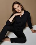 1x1 rib cuffs and welt, Fully fashioned armholes and sleevehead, Placket and button detail to cuff, Tubular linked neck and stole, Kustom Kit woven back neck label