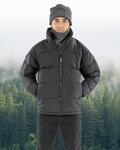 Wide shoulder panel with hidden zip access for easy decoration, Heavy duty full zip with zip pull, Hand filled poly wadding, Zip closing side pockets, Zipped inside pocket, Inner storm flap, Tear release cuffs, Stand-up collar, Drawcord hem, Hang loop, Recycled fabrics using materials made from recycled bottles and post-industrial wasteRecycled cartons & biodegradable bags