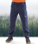Elastomultiester fibres.Soft and wrinkle free stretch fabric.Moisture wicking properties.Slim fit.Side elasticated waistband with high back and belt loops.Zip fly with rivet.Reinforced ruler pocket.Hammer loop.Multi compartment thigh pockets.Expandable back pockets.Articulated knees.Treble stitched critical seams.Tag free.